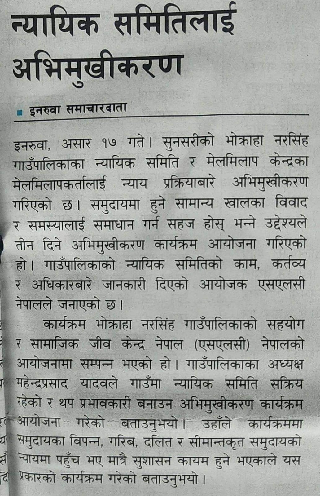 Social Life Center (SLC) Nepal is a non-profit organization established in 2009 A.D, working in Sunsari and Saptari districts to uplift marginalized and underprivileged communities. Its main focus areas are Education, Health, Disaster Relief, Drinking Water and Sanitation, Livelihood Supports and many more.